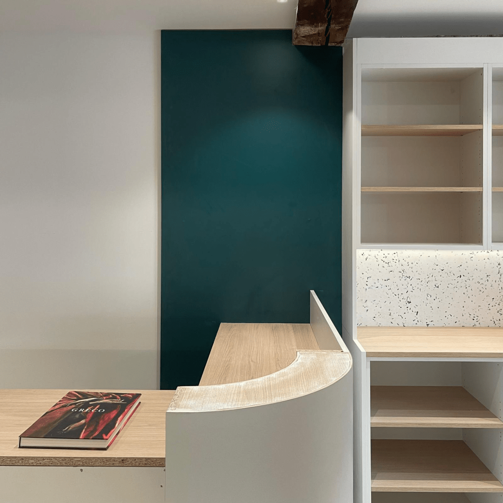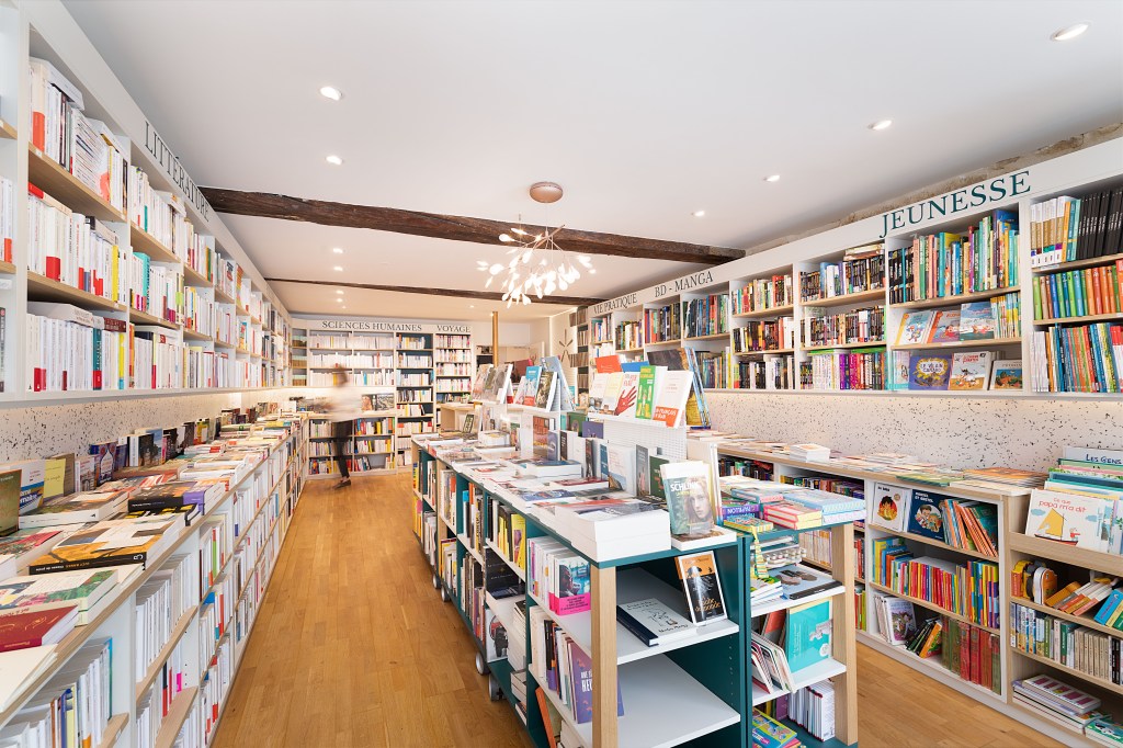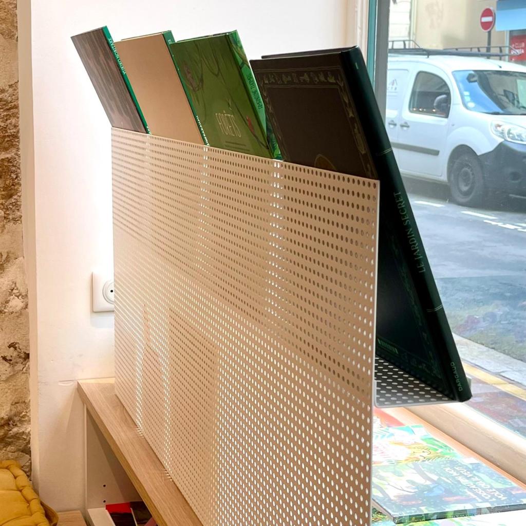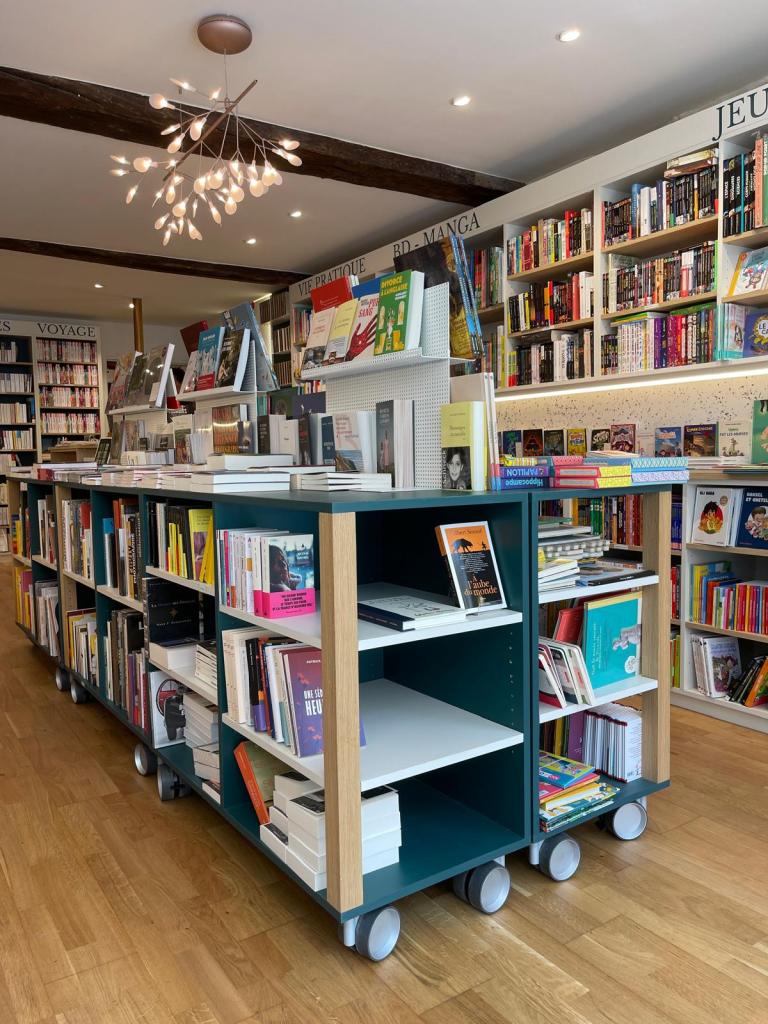 Projet : Conception et réalisation d’une librairie indépendante à Saint-Germain-en-Laye, pensée pour proposer 6600 livres à la vente dans un espace restreint. Le concept mêle convivialité, légèreté et fraîcheur, avec l’utilisation de chêne, de nuances de grège, de pavés et de tôle perforée. L’agencement a été conçu pour maximiser l’espace tout en offrant une atmosphère accueillante et lumineuse, propice à la découverte et à la lecture.
