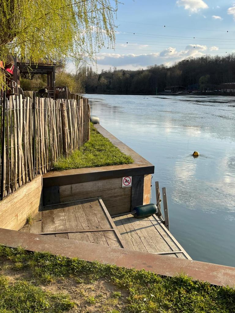 Avant de démarrer les travaux du Bord’O, la consolidation des berges était nécessaire, impliquant des démarches administratives auprès de Voies Navigables de France (VNF). Cette contrainte a permis l’opportunité de créer une rampe de mise à l’eau et un ponton en matériaux recyclés à partir d’un plancher en azobé récupéré des fonds d’une péniche.