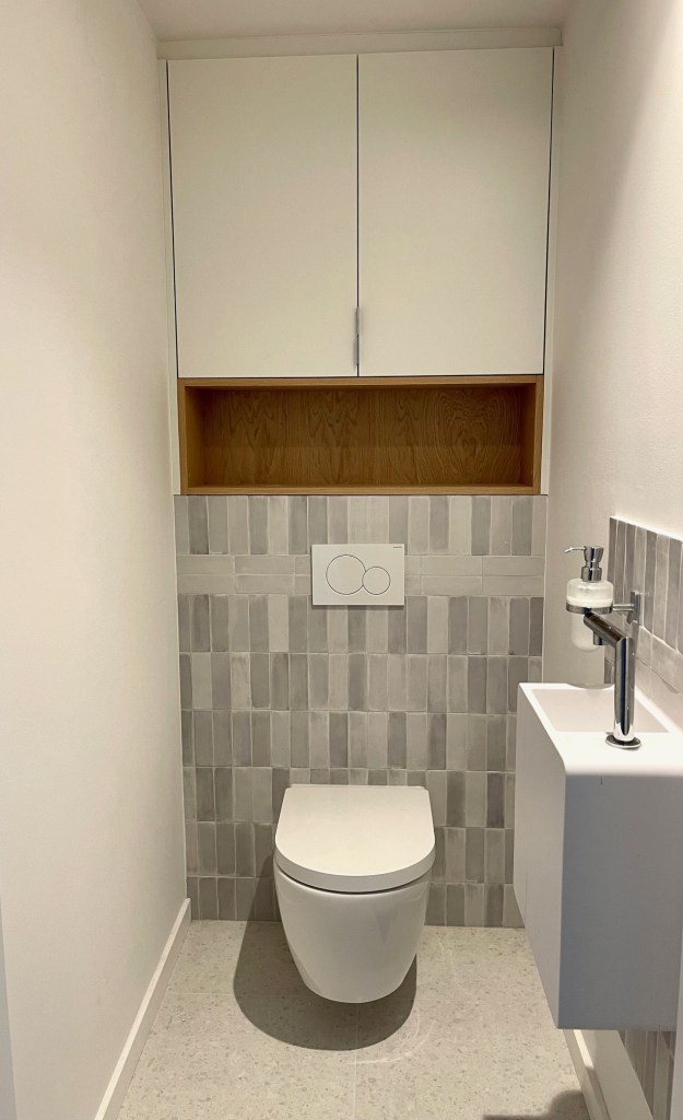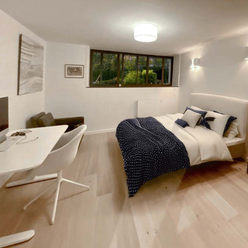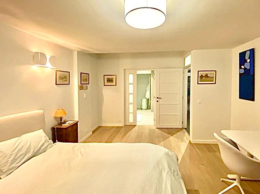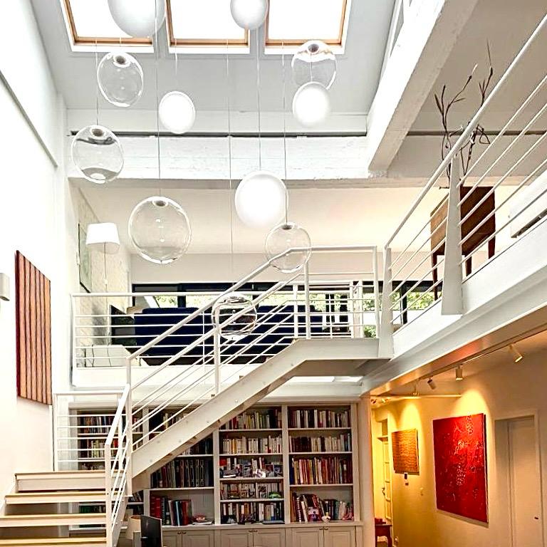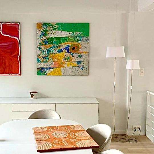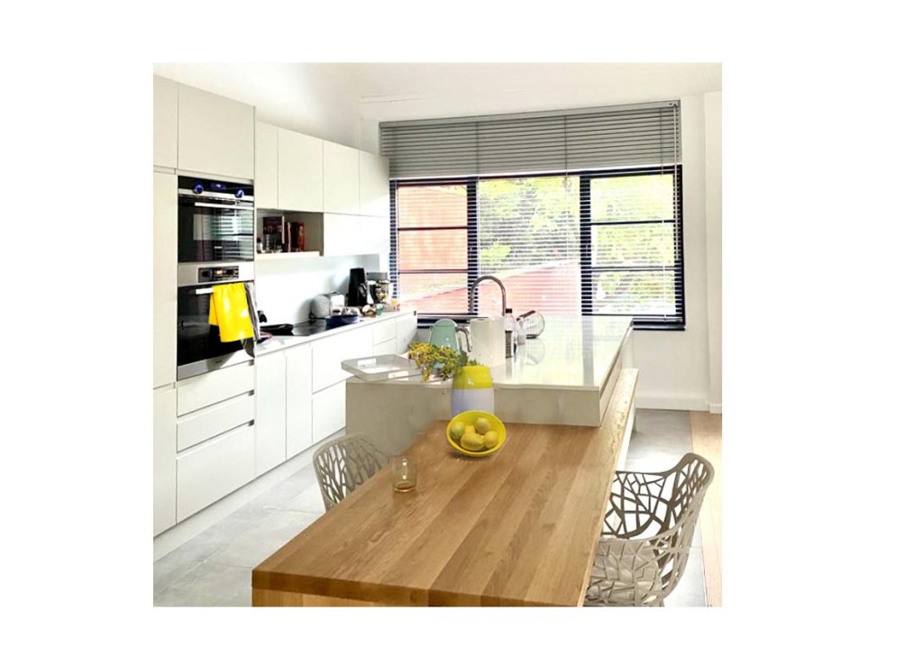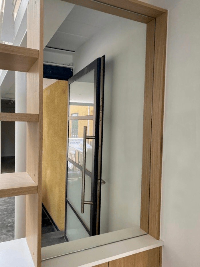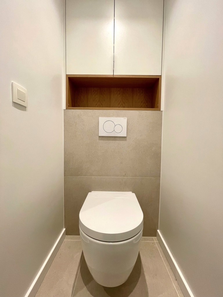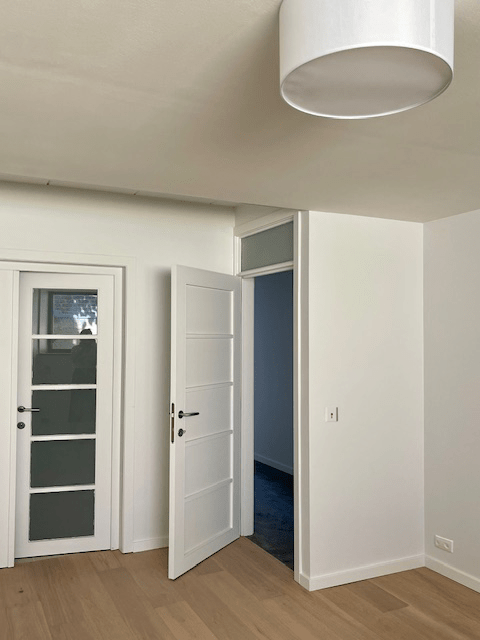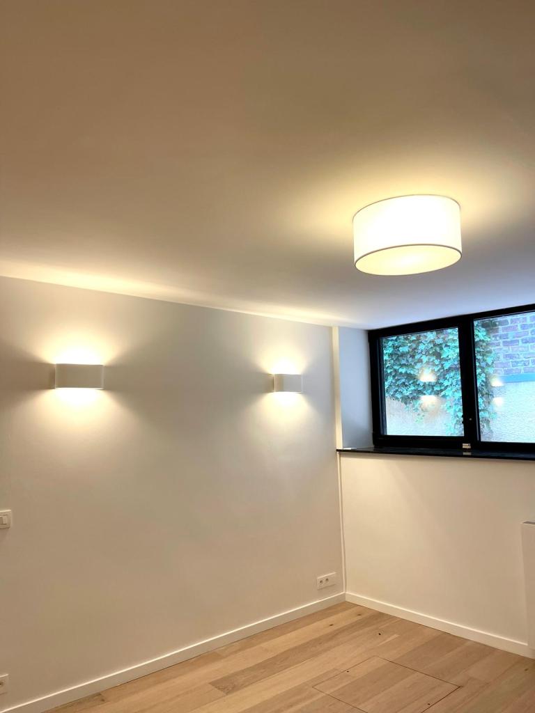Projet : Réaménagement d’un loft lumineux à Bruxelles pour un collectionneur d’art. Conception d’espaces distincts sans cloisonnement complet, grâce à l’utilisation de tôle perforée, permettant de diviser les zones tout en laissant passer la lumière. L’utilisation du chêne apporte une touche de chaleur, tandis que les surfaces blanches mettent en valeur les œuvres d’art dans une scénographie sobre et subtile, où chaque espace laisse entrevoir le suivant.